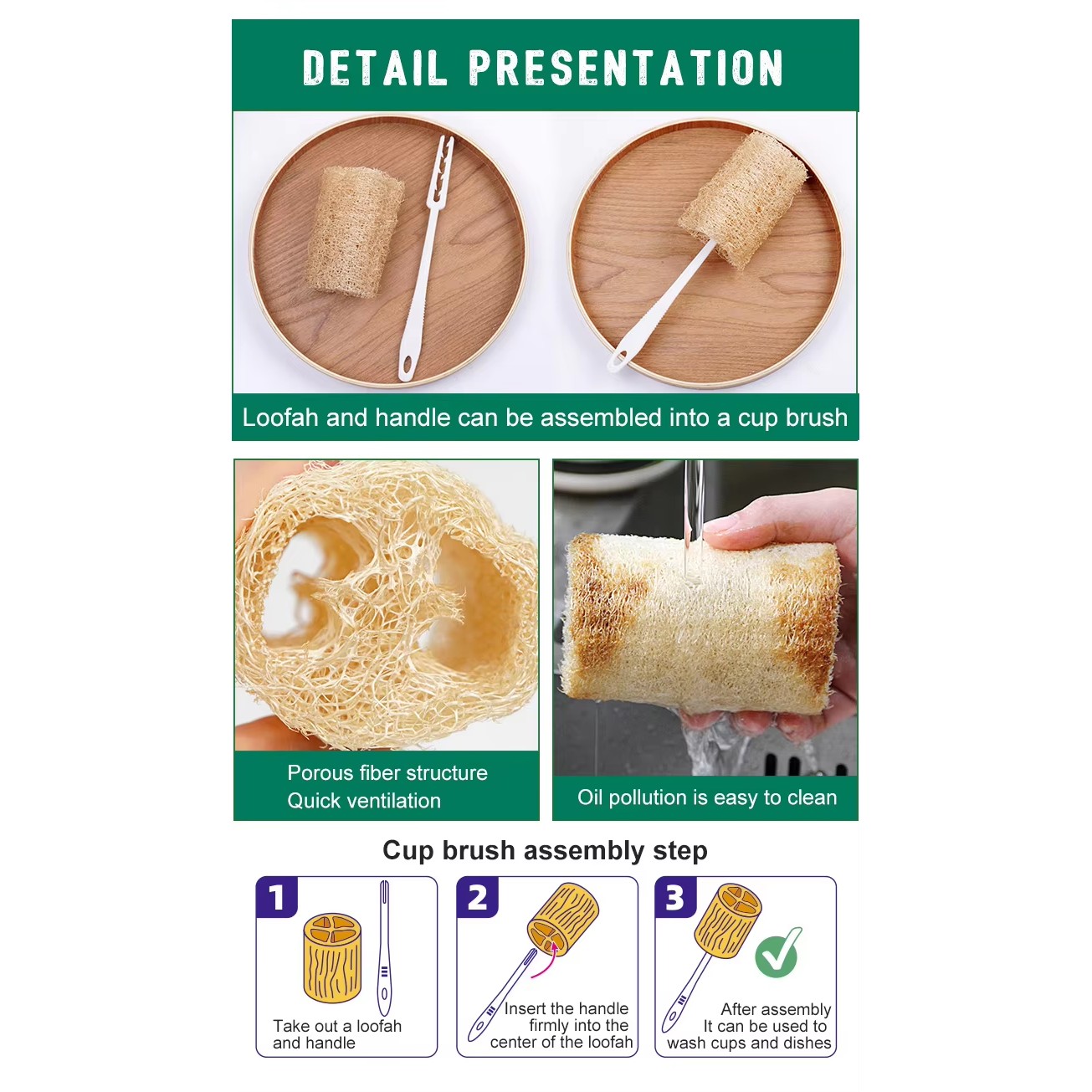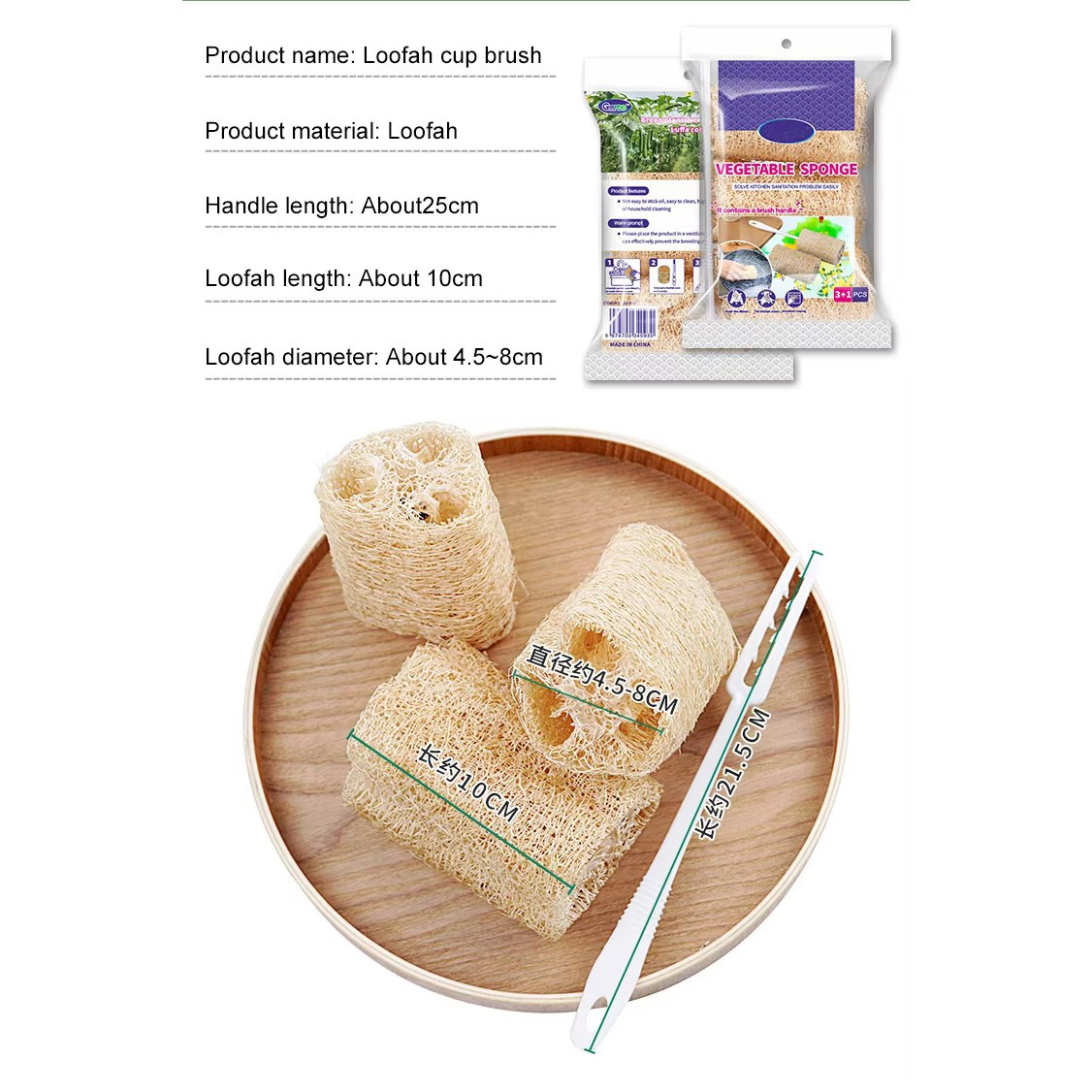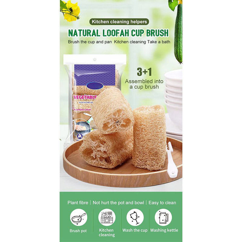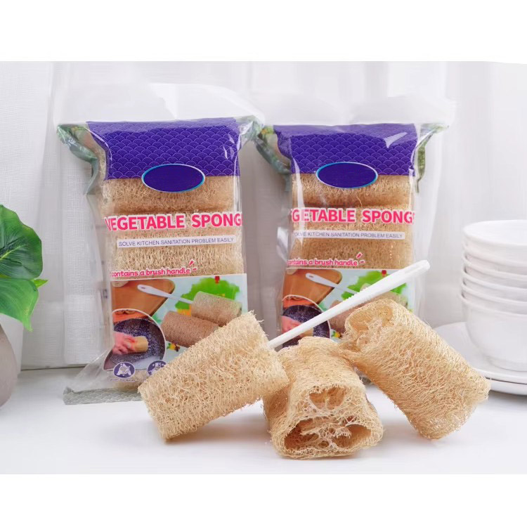 Mỗi bàn chải xơ mướp tự nhiên hỗ trợ làm sạch nhà bếp đều được nén và làm phẳng. Xơ mướp sẽ nở ra khi ướt.