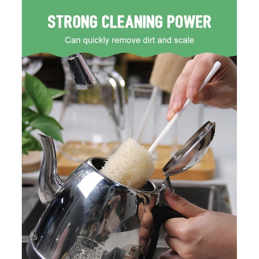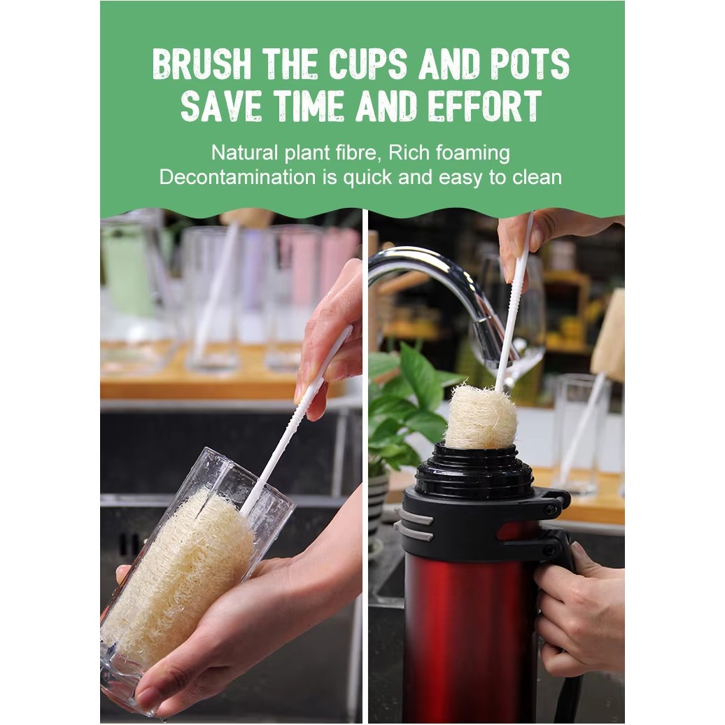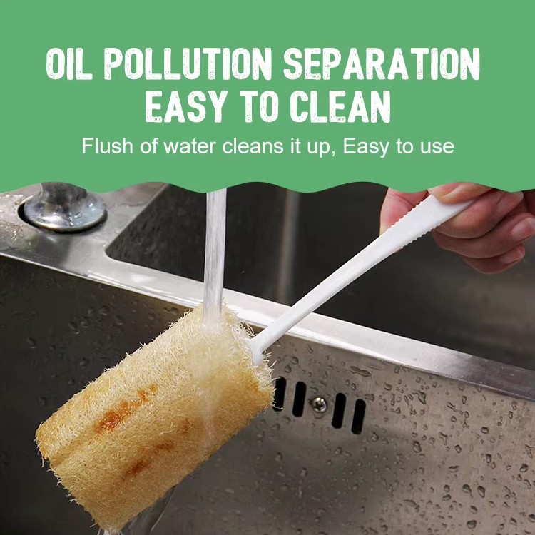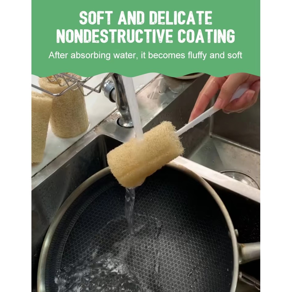 Mỗi bàn chải xơ mướp tự nhiên hỗ trợ làm sạch nhà bếp đều được nén và làm phẳng. Xơ mướp sẽ nở ra khi ướt.