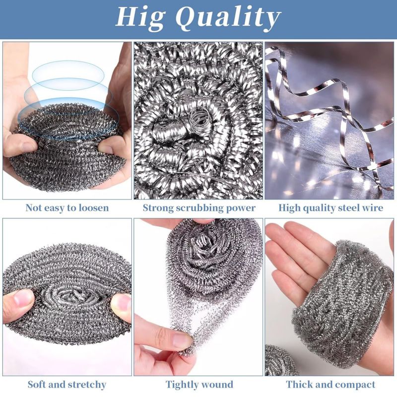 • Làm sạch mạnh mẽ Làm bằng thép không gỉ, chúng cực kỳ hiệu quả trong việc loại bỏ thực phẩm và mỡ bị cháy khó khăn từ khay nướng, nướng, nướng thịt và thậm chí cả bên trong lò nướng, đặc biệt là giá đỡ và thủy tinh.